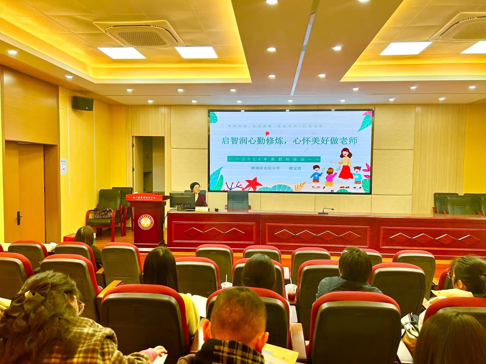 鯉城區(qū)實(shí)驗(yàn)小學(xué)傅寶青老師作《啟智潤心勤修煉 心懷美好做老師》的主題講座。傅老師聚焦新教師普遍存在的共性問題,從做好新時(shí)代“四有好老師”“四個(gè)引路人”“教育家精神”講起,多角度多維度引領(lǐng)新教師要高站位、寬視野、大格局、勤修煉、樹理想,練就為國育才,為黨育人的真本領(lǐng)。最后以知名教育家陶行知先生的“捧著一顆心來,不帶半根草去”的教育名言激勵(lì)新教師心懷美好做教育。