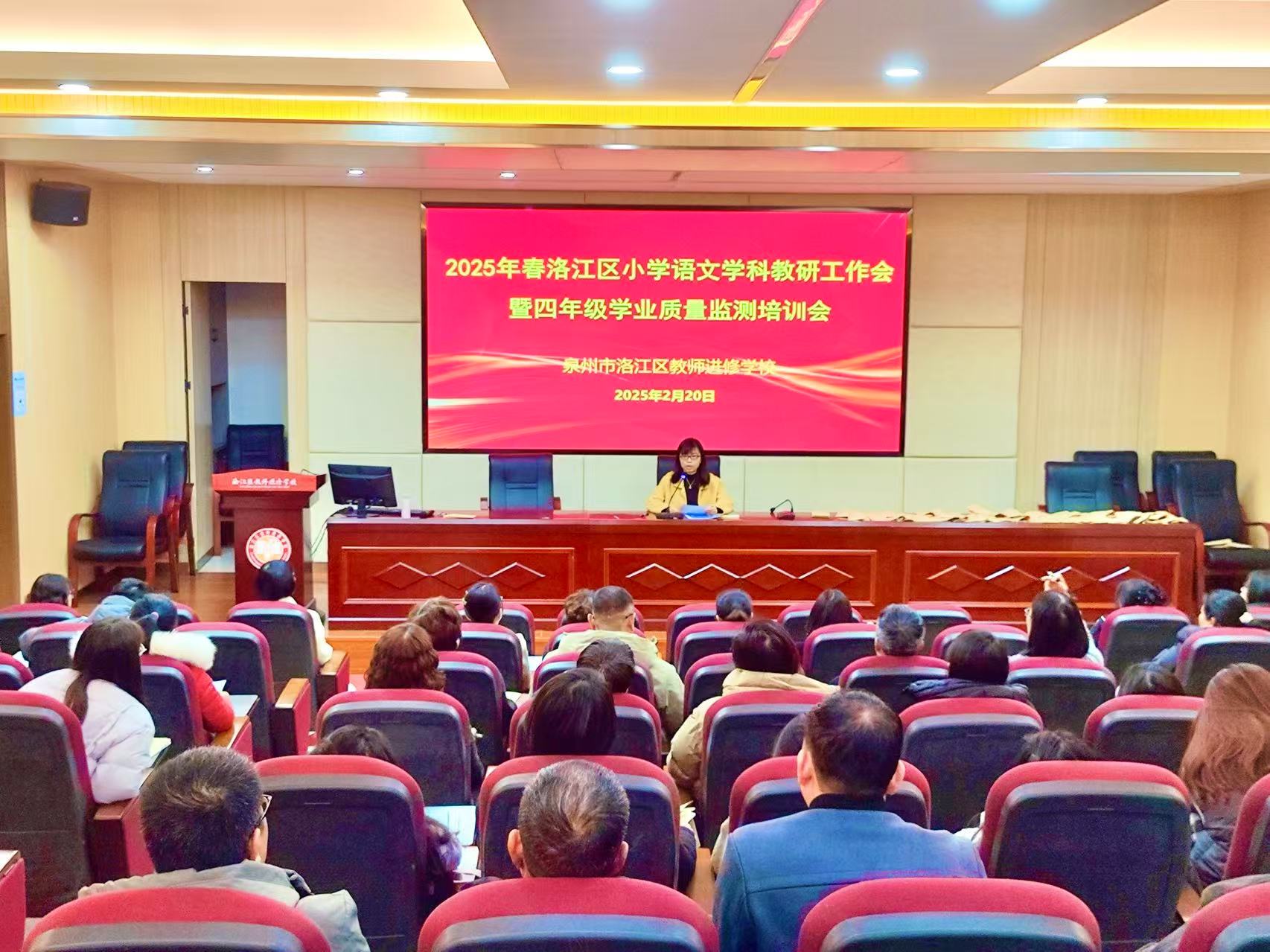 為更好地部署2025年春我區(qū)小學(xué)語文學(xué)科教科研訓(xùn)工作,凝聚全區(qū)教研力量,促進(jìn)區(qū)內(nèi)各小學(xué)間的互動交流,落實(shí)“教-學(xué)-評”一體化,更好地迎接國家義務(wù)教育學(xué)業(yè)質(zhì)量監(jiān)測。2月20日,區(qū)教師進(jìn)修學(xué)校舉辦小學(xué)語文教研工作會暨四年級學(xué)業(yè)質(zhì)量監(jiān)測培訓(xùn)。區(qū)教師進(jìn)修學(xué)校分管領(lǐng)導(dǎo),小學(xué)語文專、兼職教研員、各校語文教研組長、四年級全體語文教師等120多人參會?;顒佑蓞^(qū)教師進(jìn)修學(xué)校小學(xué)語文教研員賴美連老師主持。