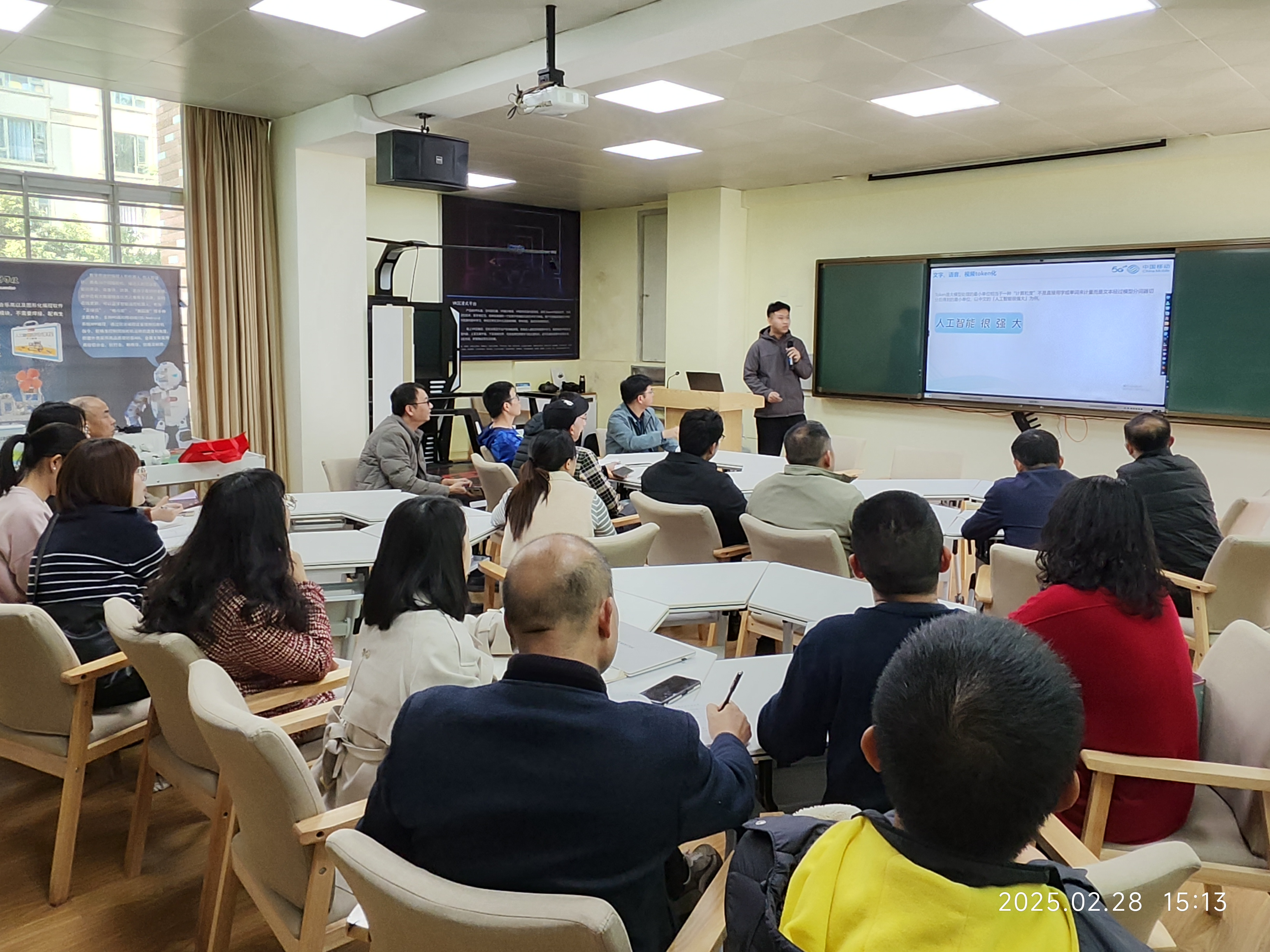 為促進人工智能助力教育變革,落實各級教育部門關(guān)于加強中小學(xué)人工智能教育的工作部署,提升我區(qū)教師人工智能技術(shù)應(yīng)用素養(yǎng),2月28日,洛江區(qū)教師進修學(xué)校組織開展“DeepSeek賦能智慧校園:AI驅(qū)動的教育教研創(chuàng)新實踐”主題研討活動。本次研修由教研員彭老師主持,區(qū)內(nèi)各學(xué)校學(xué)科教師和科創(chuàng)教師代表等參加。
