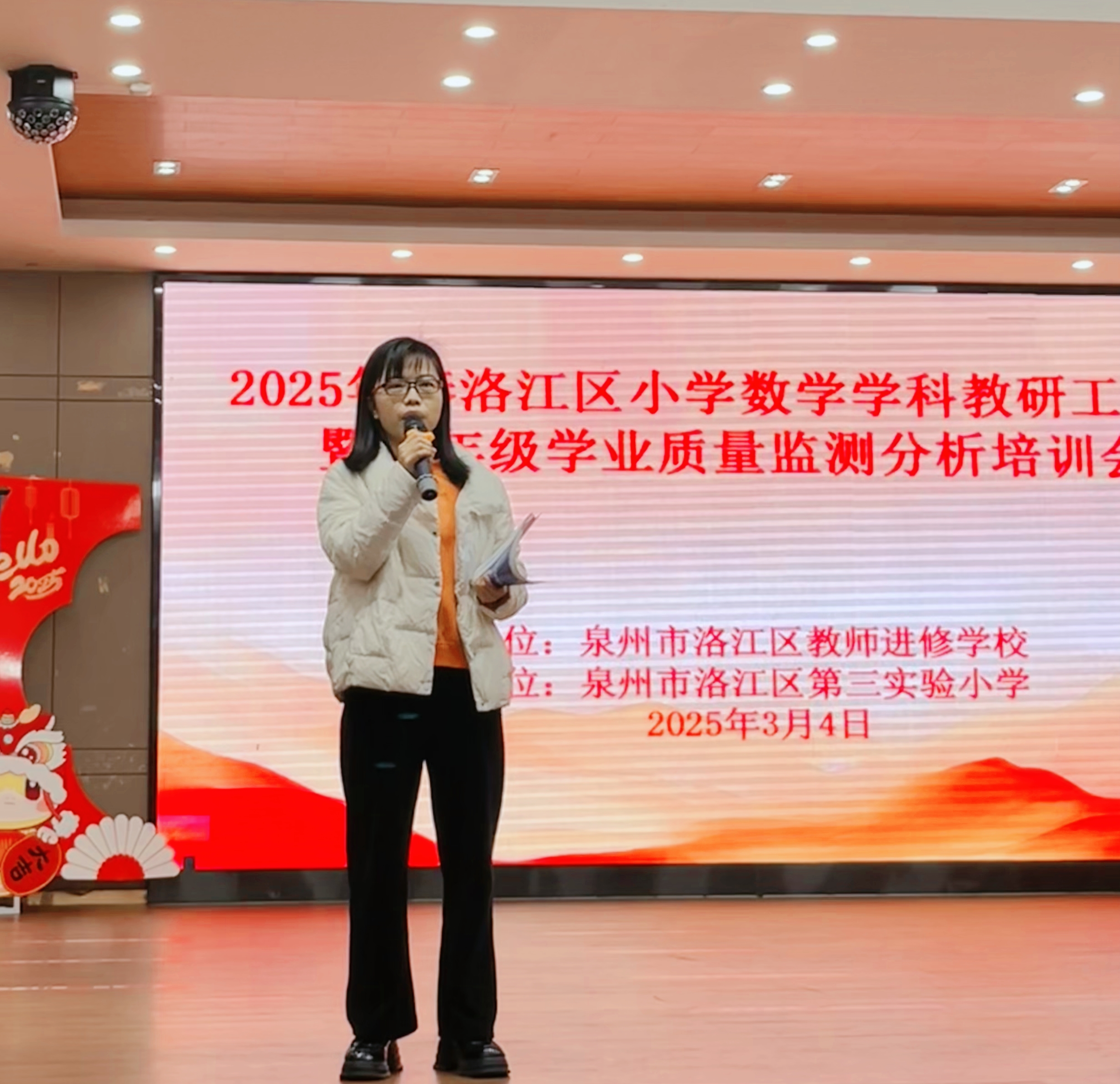 為更好地部署洛江區(qū)小學(xué)數(shù)學(xué)科教科研訓(xùn)工作,進一步深入學(xué)習(xí)、領(lǐng)會、實踐《義務(wù)教育課程方案》《義務(wù)教育數(shù)學(xué)數(shù)課程標準(2022年版)》精神,落實“雙減”政策,更好地迎接義務(wù)教育學(xué)業(yè)質(zhì)量監(jiān)測,3月4日下午,洛江區(qū)小學(xué)數(shù)學(xué)學(xué)科教研工作會暨四年級學(xué)業(yè)質(zhì)量監(jiān)測分析培訓(xùn)會在第三實驗小學(xué)召開。區(qū)小學(xué)數(shù)學(xué)名師工作室領(lǐng)銜名師,全區(qū)數(shù)學(xué)教研組長,四年級數(shù)學(xué)教師共計100多位老師參加,會議由數(shù)學(xué)教研員賴要萬老師主持,區(qū)教師進修學(xué)校李麗霞副校長到會指導(dǎo)。