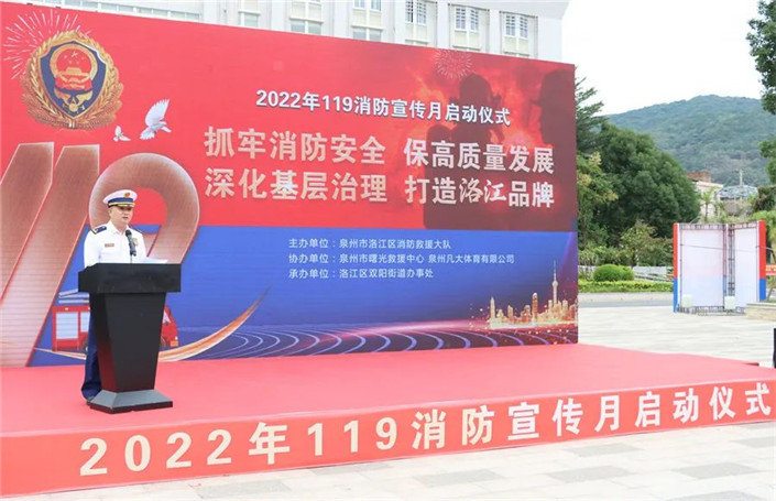 11月7日,洛江區(qū)“抓牢消防安全 保高質(zhì)量發(fā)展 深化基層治理 打造洛江品牌”2022年119消防宣傳月活動啟動儀式在雙陽僑鄉(xiāng)廣場舉行。區(qū)委常委、常務(wù)副區(qū)長王昭昭參加。