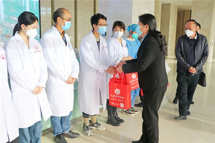 12月21日,區(qū)委書記顏麗明帶隊開展疫情防控調(diào)研督導(dǎo)工作,看望慰問一線工作人員。區(qū)委常委、宣傳部部長張榮偉參加。