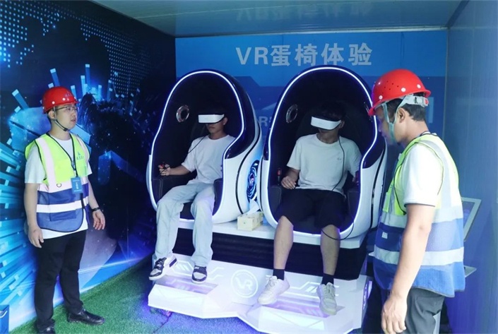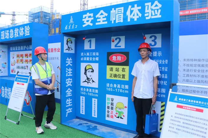 隨后開展洛江區(qū)醫(yī)院項(xiàng)目一期安全生產(chǎn)標(biāo)準(zhǔn)化建設(shè)觀摩活動(dòng)?,F(xiàn)場以“展示+體驗(yàn)”的形式進(jìn)行,通過設(shè)置了屋面工程樣板、水井電井樣板等區(qū)域及綜合用電體驗(yàn)、現(xiàn)場急救體驗(yàn)、VR安全體驗(yàn)館等多個(gè)互動(dòng)體驗(yàn)項(xiàng)目,介紹了項(xiàng)目在安全生產(chǎn)、工地建設(shè)等方面的亮點(diǎn),并讓參觀者通過親身體驗(yàn),深刻感受安全生產(chǎn)的重要性。在觀摩過程中,觀摩人員與現(xiàn)場講解人員積極互動(dòng),不時(shí)就具體問題展開深入探討交流,大家紛紛對本次觀摩中的先進(jìn)經(jīng)驗(yàn)做法給予充分肯定。