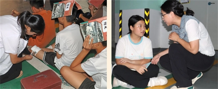 到達(dá)防空地下室后,各班以班級(jí)為單位形成方陣、清點(diǎn)人數(shù),醫(yī)護(hù)人員對(duì)受傷學(xué)生進(jìn)行專業(yè)護(hù)理,心理老師對(duì)部分表現(xiàn)緊張的學(xué)生做好安撫及心理疏導(dǎo),直至“警報(bào)解除信號(hào)”響起,有序離開疏散點(diǎn)。