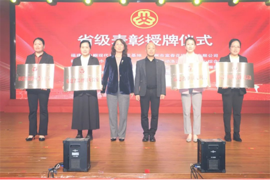黃寶玲、沈藝程共同為省級巾幗示范基地——泉州市富春花境園藝有限公司、省級巾幗文明崗——泉州移動洛江區(qū)營銷中心綜合組、省級品牌婦女微家——洛江移動“紅芯”婦女微家、省級品牌執(zhí)委工作室——尤秀治執(zhí)委工作室授牌。