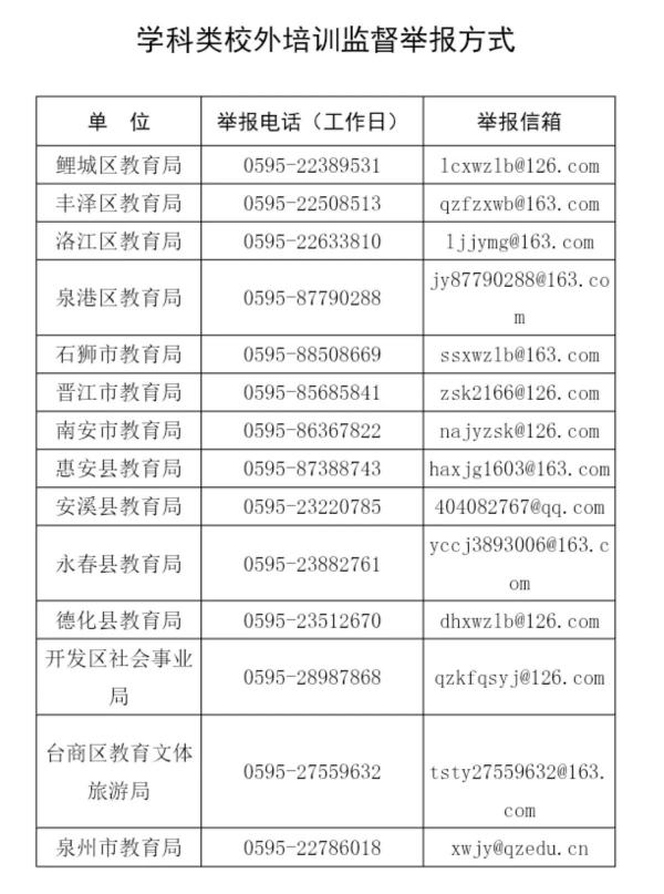 2.舉報違規(guī):若發(fā)現(xiàn)違規(guī)學科培訓、無證機構(gòu)或虛假宣傳,請通過屬地教育部門舉報電話或郵箱反饋(附后),共同維護教育生態(tài);
