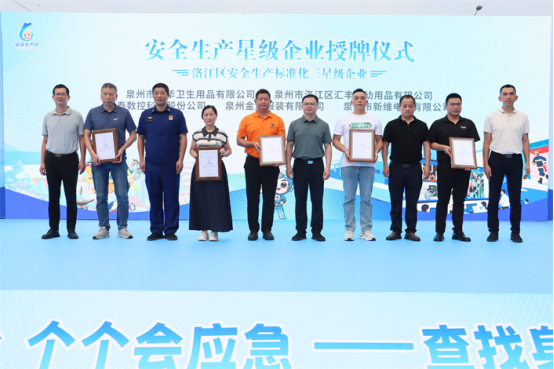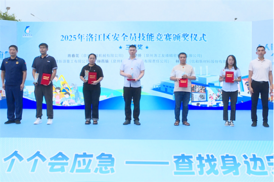 現(xiàn)場,涂德望等領(lǐng)導(dǎo)嘉賓共同啟動2025年洛江區(qū)“安全生產(chǎn)月”安全宣傳咨詢?nèi)栈顒?,并為洛江區(qū)安全生產(chǎn)標準化三星級企業(yè)授牌,為2025年洛江區(qū)安全員技能競賽獲獎選手頒獎。