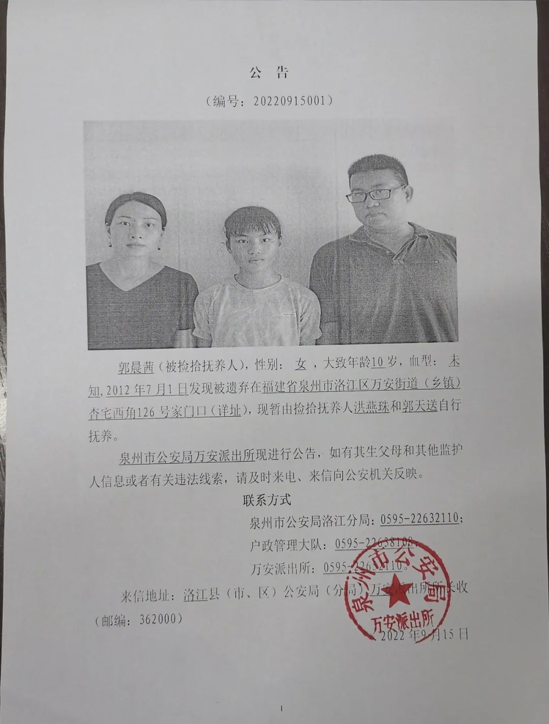 關(guān)于被撿拾撫養(yǎng)人員的公示