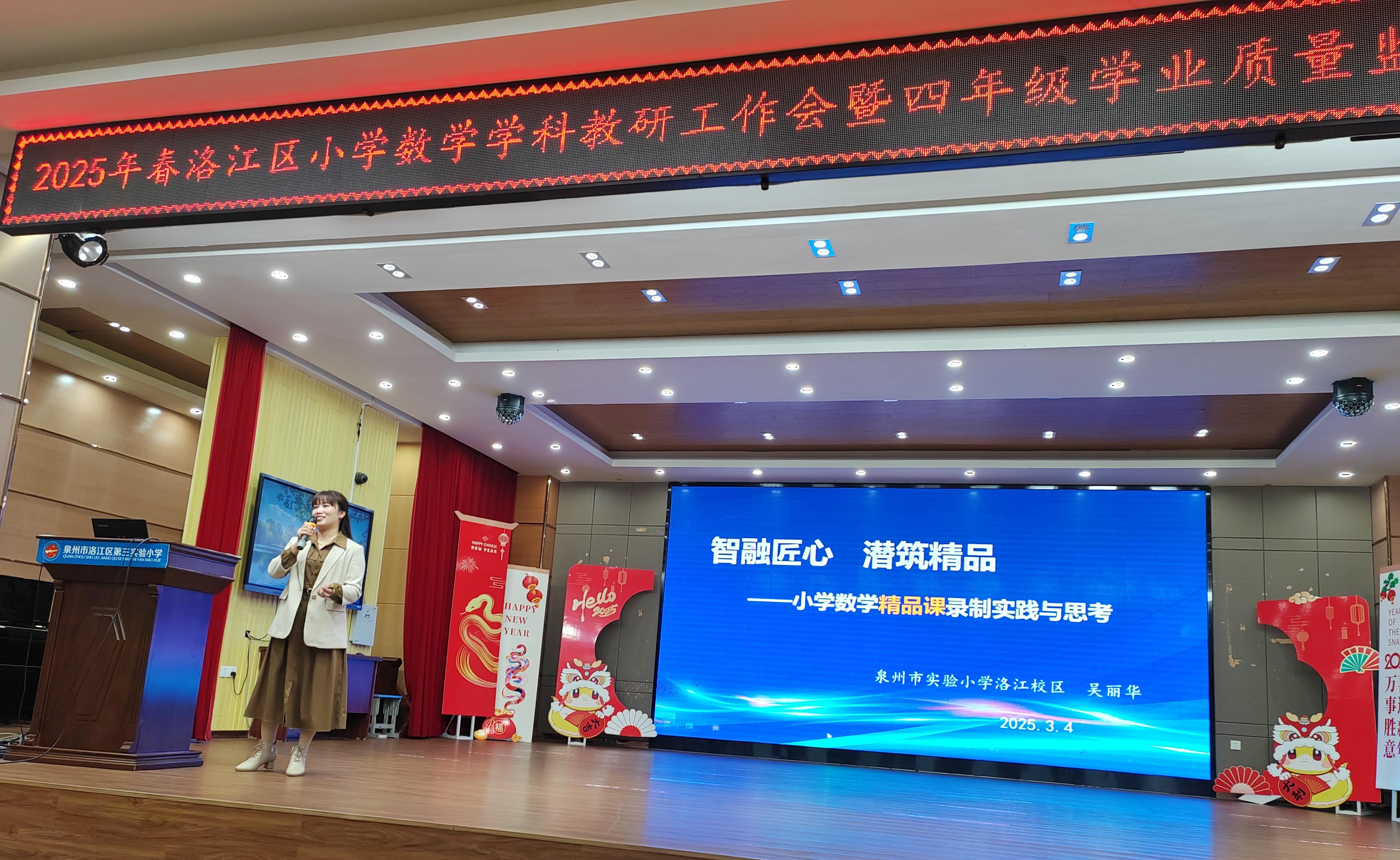 接著,區(qū)小學(xué)數(shù)學(xué)名師工作室領(lǐng)銜名師吳麗華老師以《智融匠心,潛筑精品——小學(xué)數(shù)學(xué)精品課錄制實踐與思考》為題開講。吳老師結(jié)合豐富的理論與教學(xué)經(jīng)驗,從選題、教學(xué)設(shè)計構(gòu)思,到素材篩選、課件制作等細致闡述精品課的前期準備工作,強調(diào)要緊密貼合課程標準與學(xué)生認知水平。