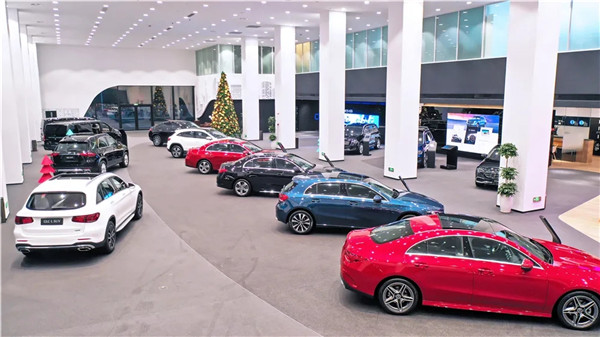 走進(jìn)寬敞明亮的奔馳4S店展廳,各類新款車型整齊排列,展廳中央的大屏幕播放著新款車輛的廣告,工作人員正向客戶詳細(xì)介紹車輛配置、性能。