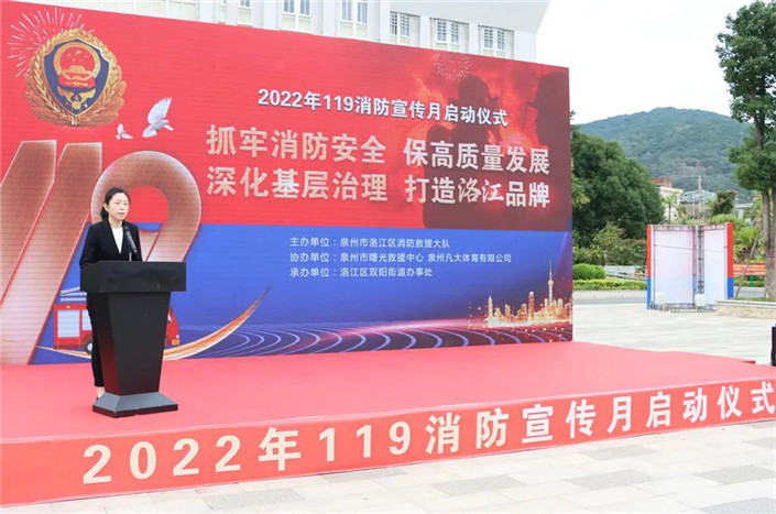 11月7日,洛江區(qū)“抓牢消防安全 保高質(zhì)量發(fā)展 深化基層治理 打造洛江品牌”2022年119消防宣傳月活動啟動儀式在雙陽僑鄉(xiāng)廣場舉行。區(qū)委常委、常務(wù)副區(qū)長王昭昭參加。