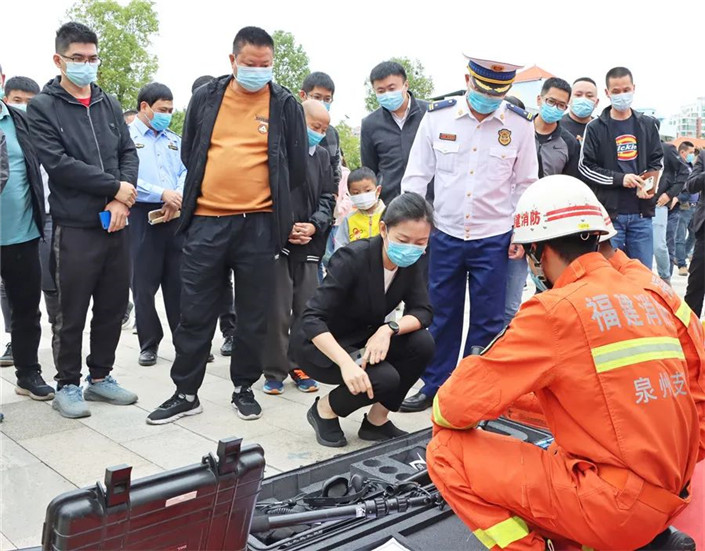 活動現(xiàn)場,與會人員還共同觀看洛江區(qū)消防文創(chuàng)品宣傳短片及安全達人宣傳短片,觀摩泉州市曙光救援中心演示高空繩索救援?;顒娱g隙還穿插消防安全知識搶答環(huán)節(jié),與會人員踴躍參與,將現(xiàn)場氛圍推向高潮。