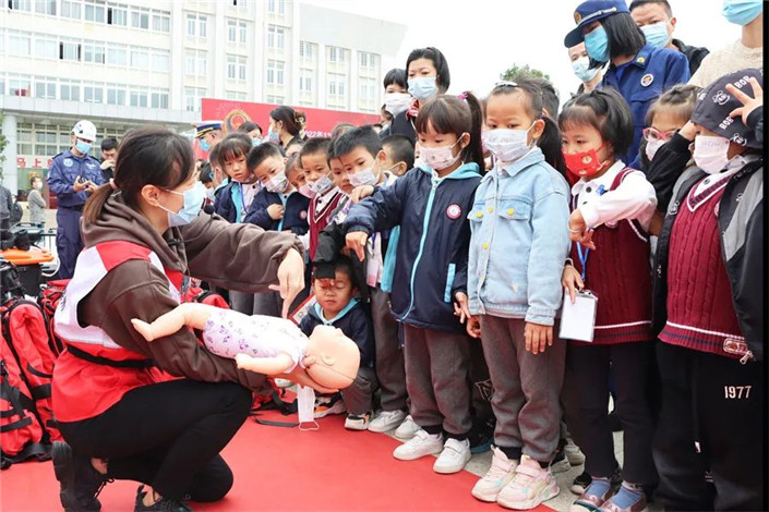 現(xiàn)場還設(shè)置了區(qū)消防大隊、區(qū)應(yīng)急局、市曙光救援中心、區(qū)紅十字會、區(qū)“安全達人”等展示區(qū),向過往群眾展示消防器材、救援裝備、融合通信系統(tǒng)以及傳授基礎(chǔ)急救等技能。專業(yè)的知識普及以及有趣的益智游戲環(huán)節(jié),吸引了大批群眾駐足,他們或認真聽講,或在工作人員的帶領(lǐng)下進行實操。在寓教于樂的氛圍中,切實提高防火意識和自救能力。